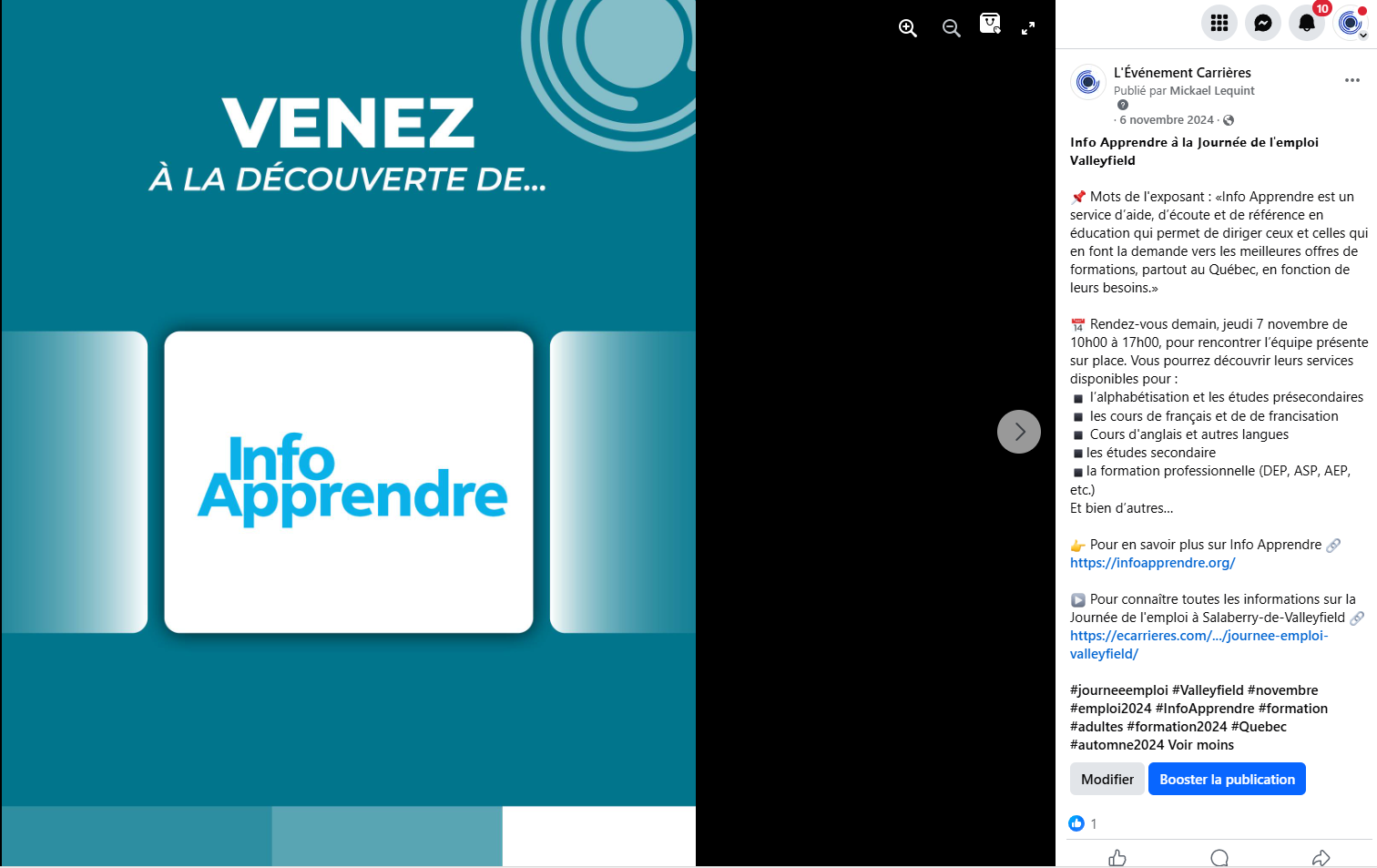 Publication rédigée et publiée par notre service des communications, annonçant de manière exclusive votre participation à l’un de nos événements. Plus de 17k abonnés.
